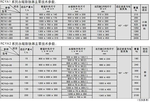 The RCYA (1) and RCYA (2) series of permanent magnet iron removers include non-magnetic pipes and permanent magnets, which are dedicated to the removal of iron from non-magnetic materials in closed pipes.