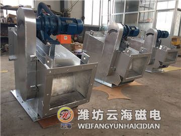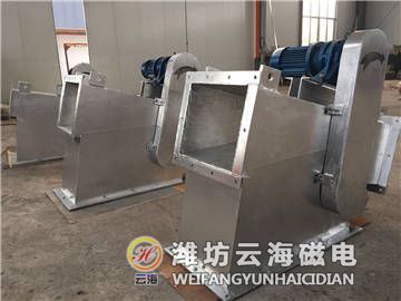 變形殼轉(zhuǎn)動為磁系運轉(zhuǎn),從結(jié)構(gòu)上加大了磁系的作用過程,配以獨特的分離機構(gòu),鐵雜物分離更徹底。采用耐高溫、強磁力的釹鐵硼磁材,磁場強度高。整機串接于粉料輸送管道中,法蘭式聯(lián)接,安裝方便。除鐵、卸鐵自動完成,設(shè)備運轉(zhuǎn)無需專人看管。永磁體做磁源,無需耗電,小功率電力排渣,耗電極低,結(jié)構(gòu)緊湊,工作穩(wěn)定可靠。