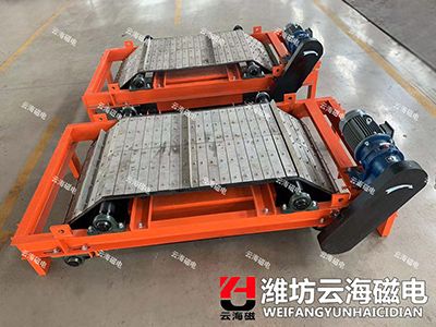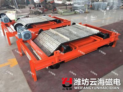 RCYK鎧裝磁帶式除鐵器系列,專門用于冶金渣選鐵,直接還原鐵廠選鐵,燜渣車間選鐵,鑄造車間選鐵等.具有獨特設計鎧裝式皮帶,能有防止尖銳鐵磁性雜物對皮帶的損害,磁系是采用稀土釹鐵硼永磁材料作為磁源,磁性能穩(wěn)定可靠;具有磁場強度高、梯度大、吸力強勁、無需電勵磁、省電節(jié)能、自動卸鐵、運行方便。鎧裝式皮帶具有自動糾偏功能,適應惡劣環(huán)境條件下工作,可長期無故障運行。