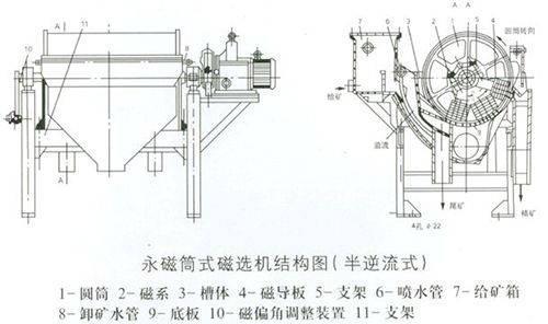 其原理是當(dāng)?shù)V漿進(jìn)入磁區(qū)時(shí),其中強(qiáng)磁性礦物被吸附在圓筒表面,弱磁性和非磁性礦物被甩掉排出,而吸附在圓筒表面上的強(qiáng)磁性礦物隨圓筒旋轉(zhuǎn),被帶出磁場(chǎng)區(qū),用沖洗水沖入精礦槽中,完成分選作業(yè)。