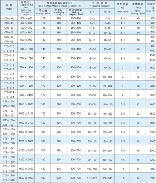 同一圓筒可配三種槽體,即順流槽(CTS)、逆流槽(CTN)和半逆流槽(CTB),以適應(yīng)不同的選別要求。
